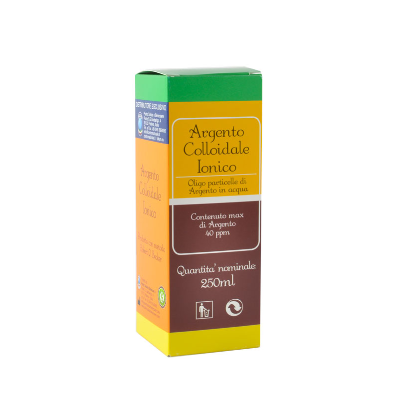 L’argento colloidale ionico è una sospensione liquida di elementi puri, ovvero, di particelle purissime di argento al 99,9% con carica elettrica positiva, sospese in acqua. L’acqua utilizzata per la sospensione dev’essere distillata o bidistillata in modo da essere assolutamente priva di minerali.