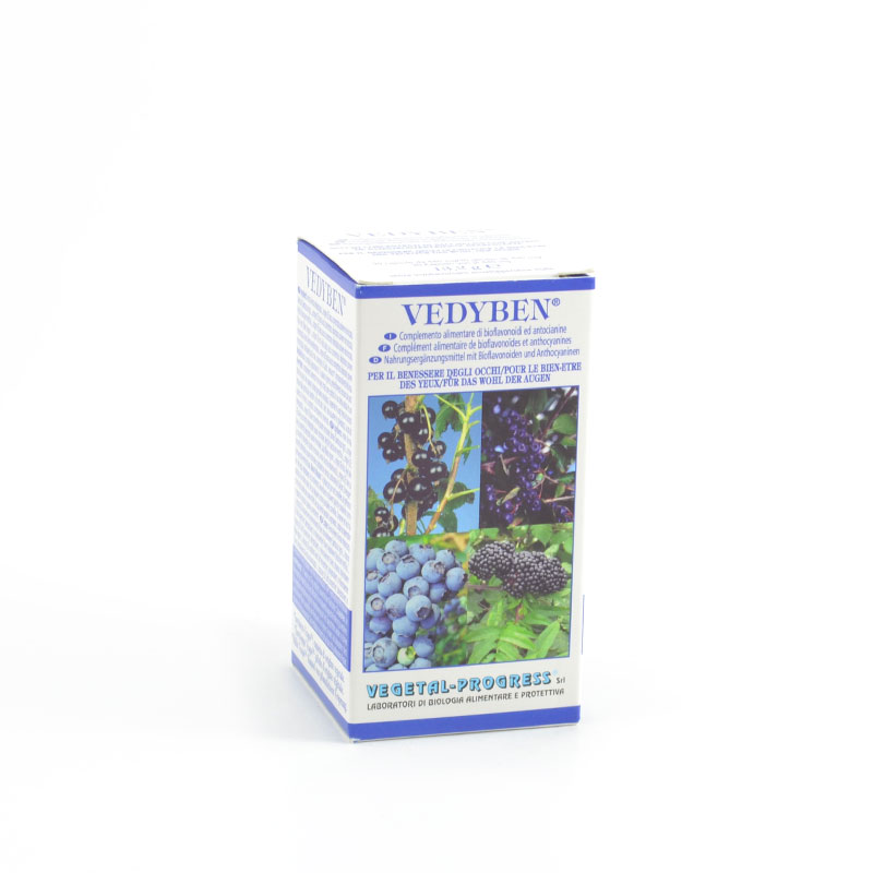 Vedyben è un integratore alimentare a base di Aronia, Mirtillo nero, Sambuco, e Ribes nero. Un rimedio naturale utile per occhi stanchi e stressati.