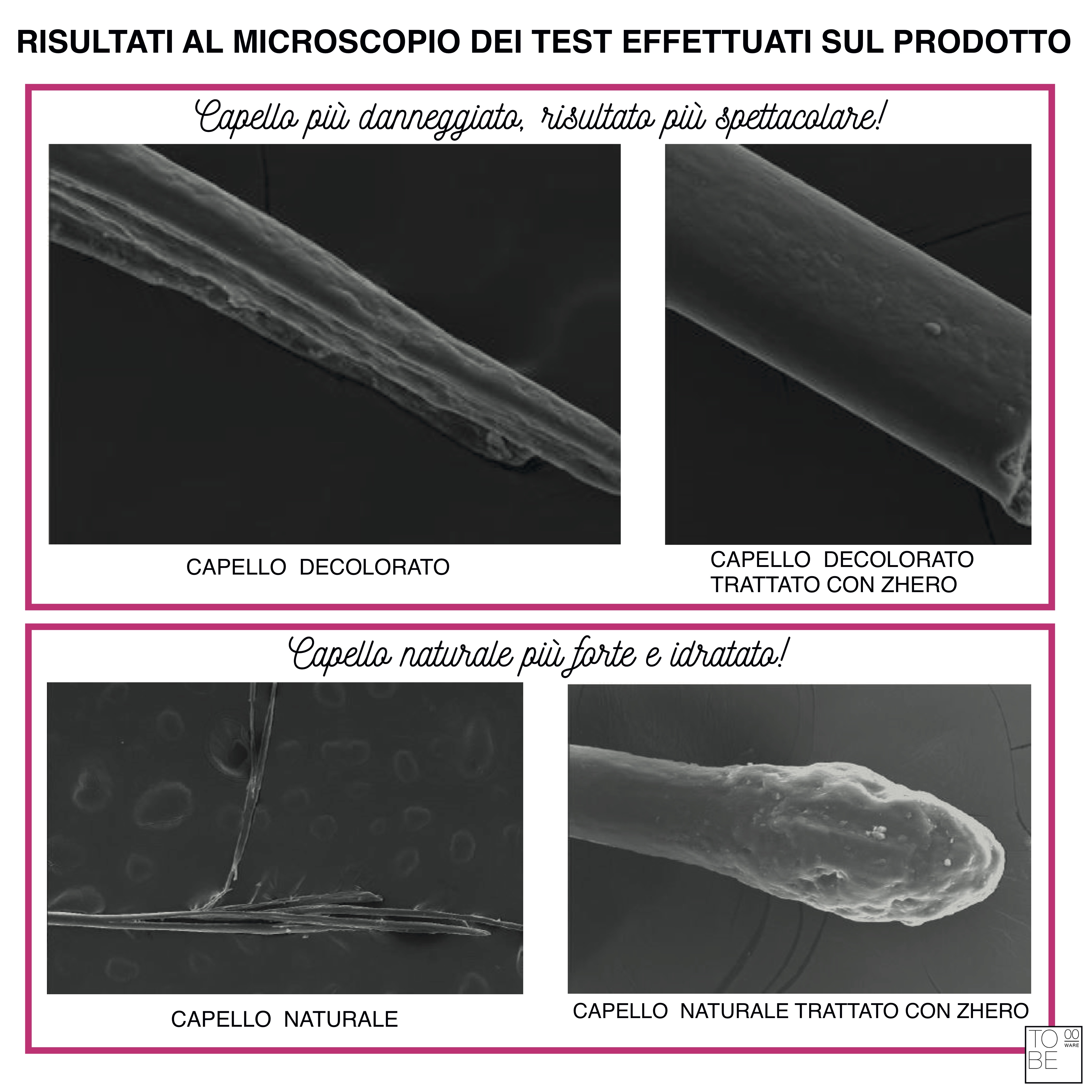 - Zhero: trattamento per riparare i capelli secchi o danneggiati – 4 minuti per riparare i danni dei capelli da decolorazione, colore, servizi chimici e bruciature da phon e piastra/ferro.