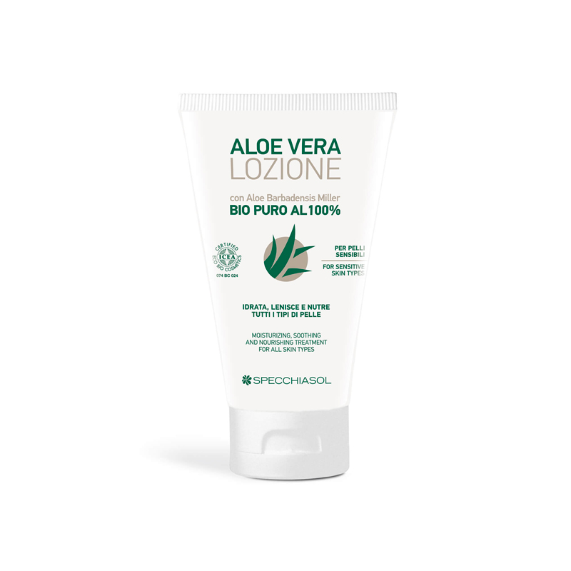 Aloe Vera Lozione, a base di pregiato gel interno di Aloe barbadensis Miller biologico e puro al 100%, è titolato in origine in Acemannano, per una maggiore garanzia di genuinità del prodotto.